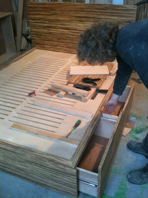 We are artists who design and construct living environments and environments to live in. Our designs merge craftswomynship with improvisation, utopian ideals with raw instinct. We borrow patterns and memories from the objects in our lives that have touched us and have brought us together. From custom cabinetry, to furniture suites and individual pieces, our work explores how we, as producers and consumers live with our ideals of belonging, citizenship, and community.