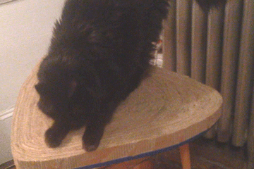 | We have been searching for an aesthetic antidote to the "cat tree"; a piece of furniture both intended for absolute defacement, yet visually pleasing to live with and complementary to the rest of our decor. Inspired by the "Nierentisch" or German Kidney Table, our design follows the clean, modern lines associated with the International Style, and is made for the artful connoisseur of cats. TEST A, a prototype edition, is constructed with wood and polished with layers of toungue oil to bring out its rich, natural colors. Anchored to its top is a detachable (and replaceable) cardboard scratchpad. On the bottom of each TEST A is adhered our production stamp, ensuring the absolute care and attention that was paid to its production. Each item is numbered and editioned. If you require international shipping, please contact us for a quote. |